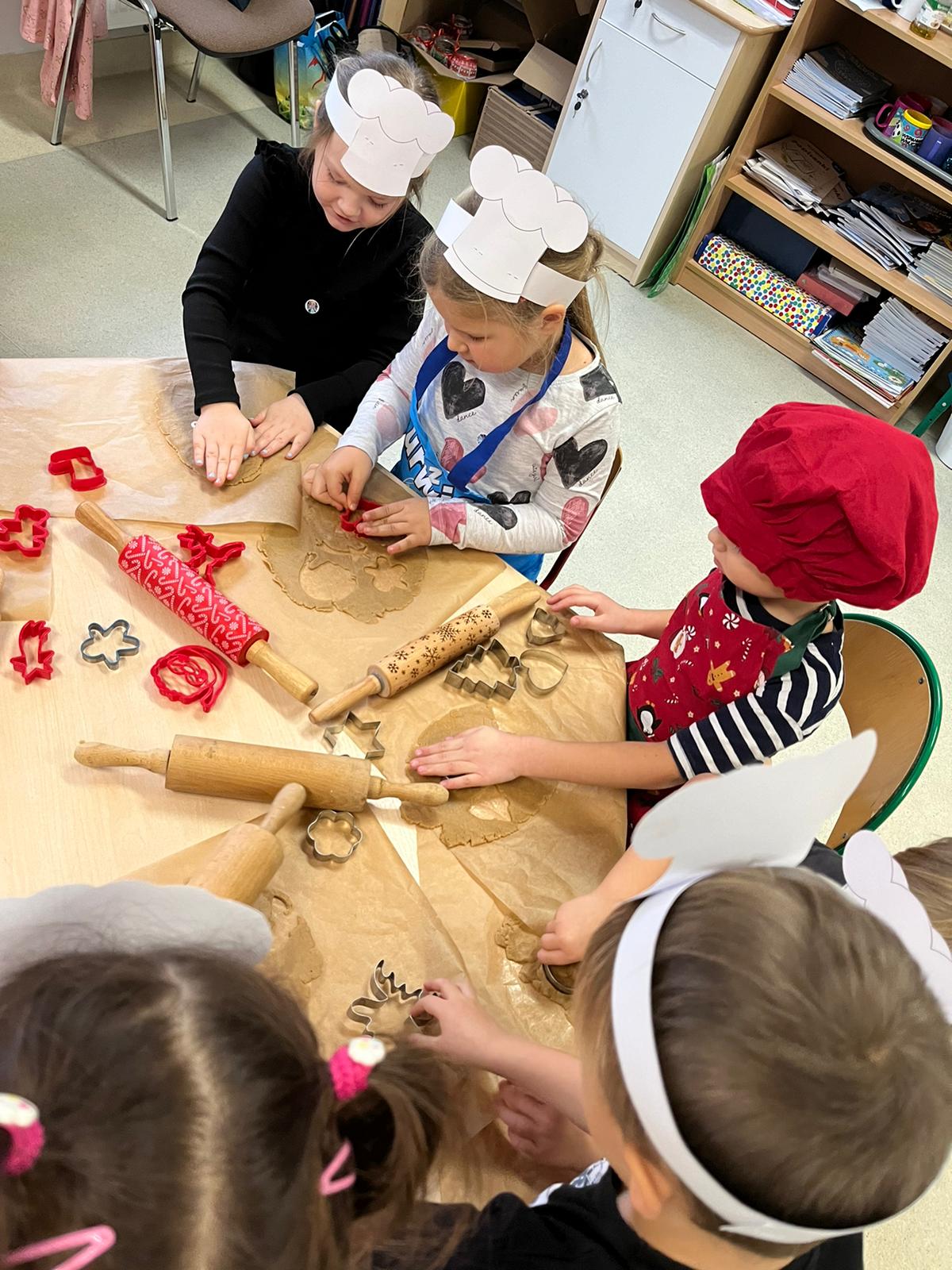 W przedszkolu odbyło się radosne spotkanie z Mikołajem, który wręczył dzieciom upominki. Przedszkolaki brały także udział w pieczeniu pierniczków, dekorując je z dużym zaangażowaniem. Rodzce mogli skosztować wypieków swoich pociech podczas świątecznego spotkania Wigilijnego.